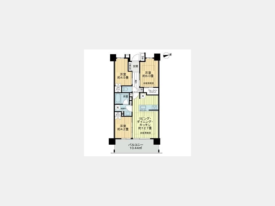 LDK 12.7 畳 洋室 6 畳 洋室 4.5 畳 洋室 4.2 畳 |