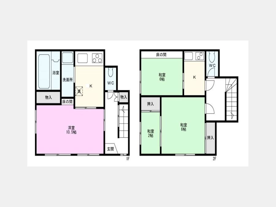 洋室 10.5 畳 和室 6 畳 和室 6 畳 和室 2 畳 K 4.5 畳 K 3 畳 |