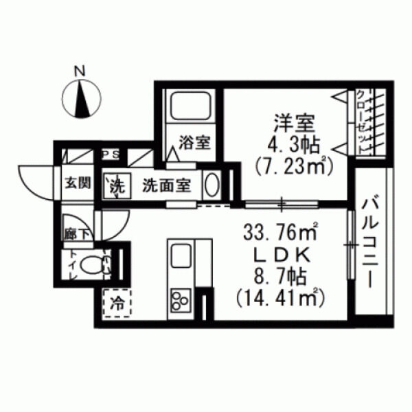 | 専有面積 | 33.76m² | バルコニー面積 | |