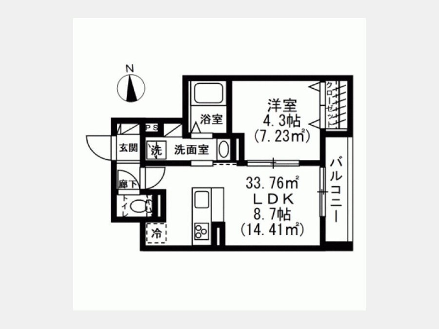 | 敷金/礼金 | 1ヶ月 / 1ヶ月 | 専有面積 | 33.76m² |