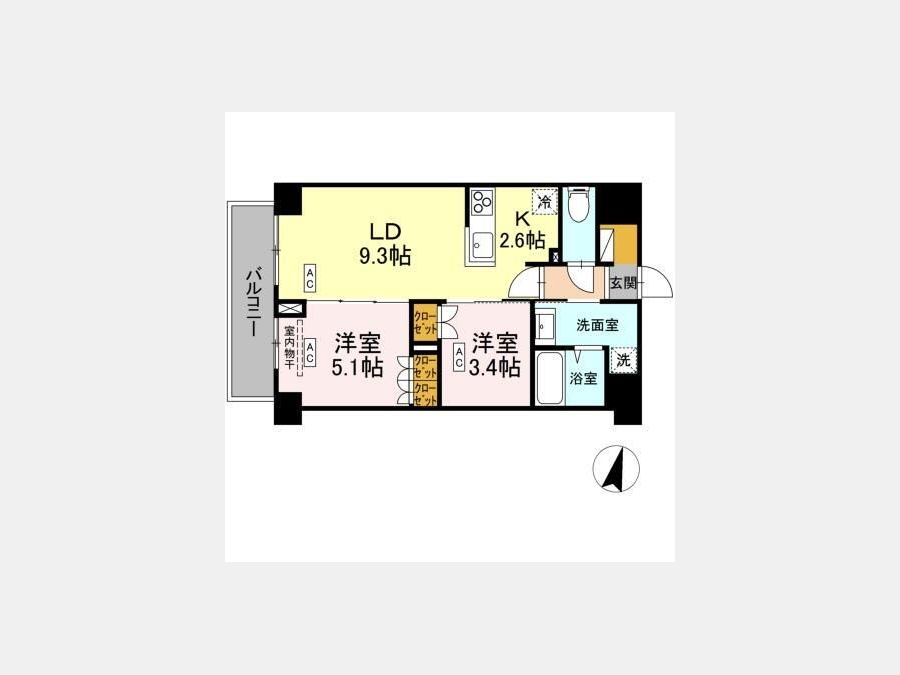 LD 9.3 畳 1 室 洋室 5.1 畳 1 室 洋室 3.4 畳 1 室 |