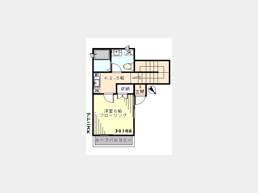 洋室 6 畳 1 室 K 2.5 畳 1 室 |