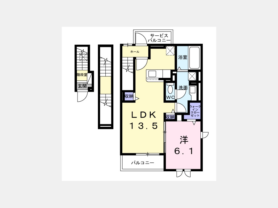洋室 6.1 畳 LDK 13.5 畳 |