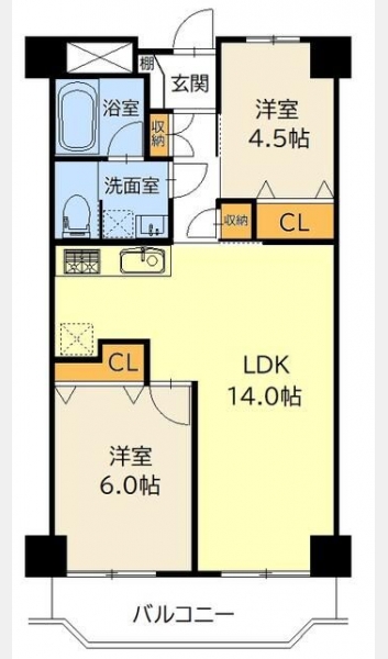洋室 6 畳 洋室 4.5 畳 LDK 14 畳 |