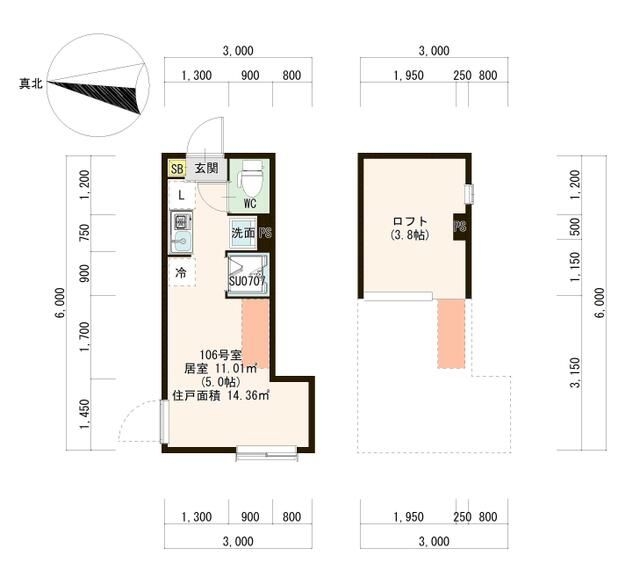 洋室 5 畳 ロフト3.8帖 |