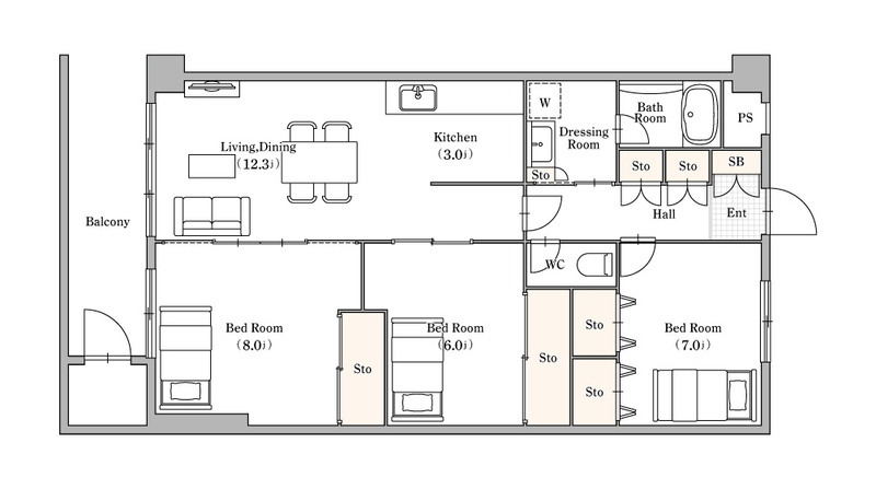 LDK 12.3 畳 洋室 8 畳 洋室 6 畳 洋室 7 畳 |
