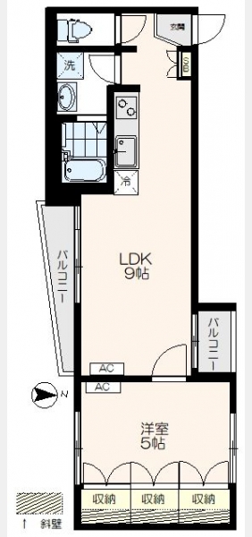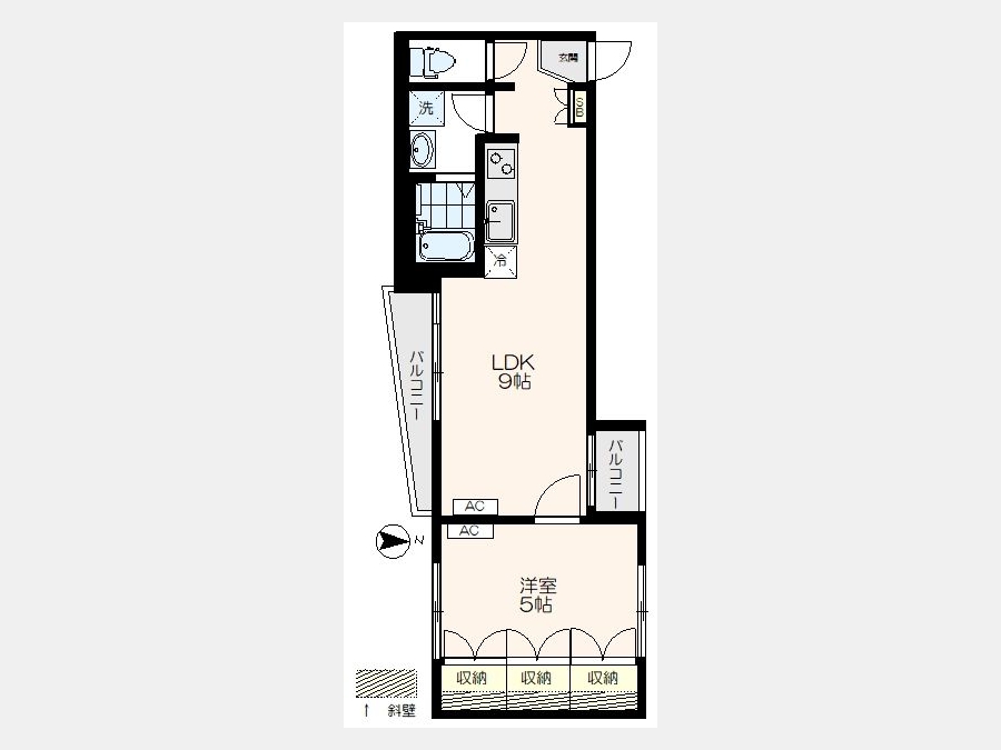 洋室 5 畳 1 室 LDK 9 畳 1 室 |