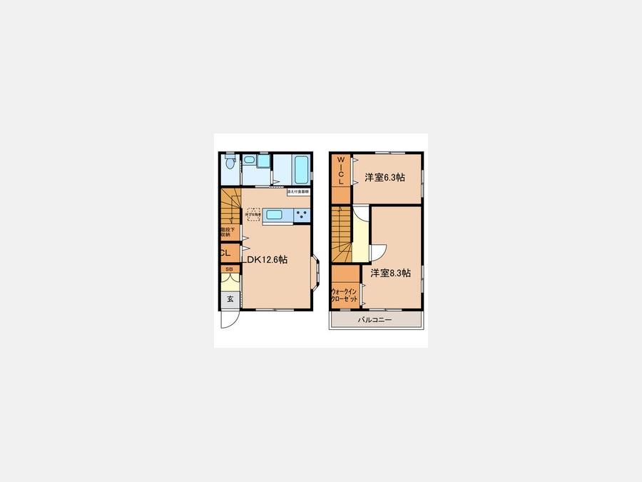 洋室 8.3 畳 洋室 6.3 畳 LDK 12.6 畳 |