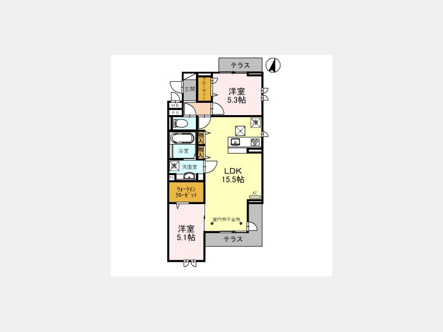 LDK 15.5 畳 洋室 5.3 畳 洋室 5.1 畳 |