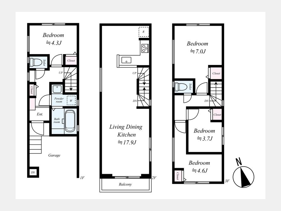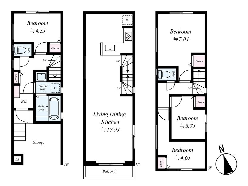 LDK 17.9 畳 洋室 7 畳 洋室 4.6 畳 洋室 4.3 畳 洋室 3.7 畳 |