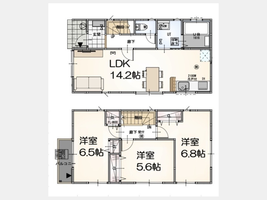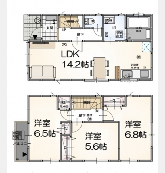 LDK 14.2 畳 1 階 洋室 6.8 畳 2 階 洋室 5.6 畳 2 階 洋室 6.5 畳 2 階 |
