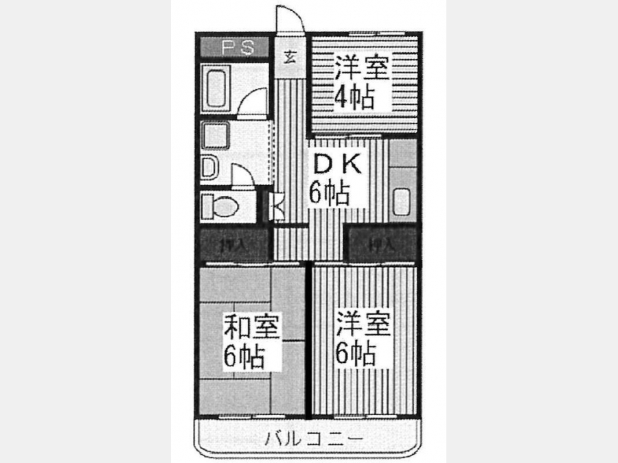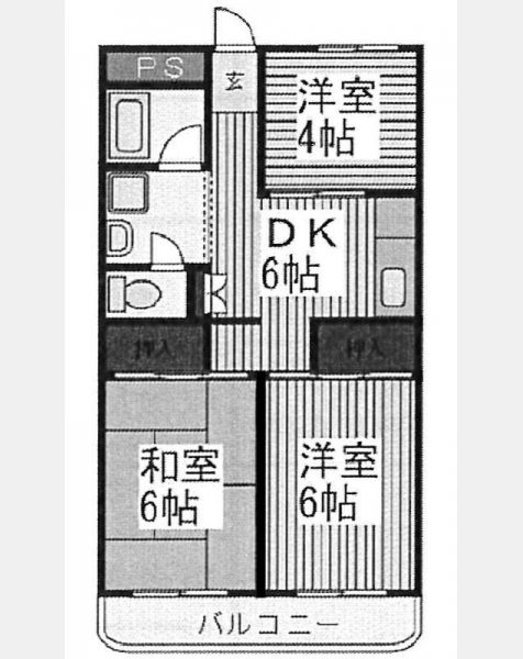 DK 6 畳 1 室 洋室 6 畳 1 室 和室 6 畳 1 室 洋室 4 畳 1 室 |