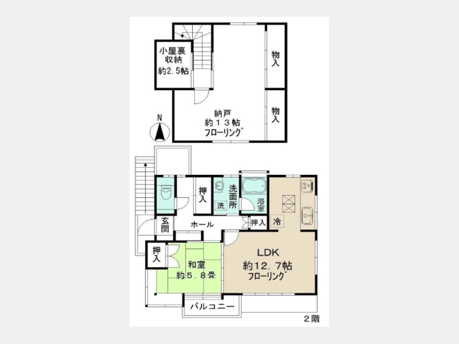 LDK 12.7 畳 和室 5.8 畳 S 13 畳 |