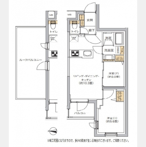 洋室 5.6 畳 洋室 3 畳 LDK 10.3 畳 |