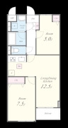 LDK 12.5 畳 洋室 7.5 畳 洋室 5 畳 |