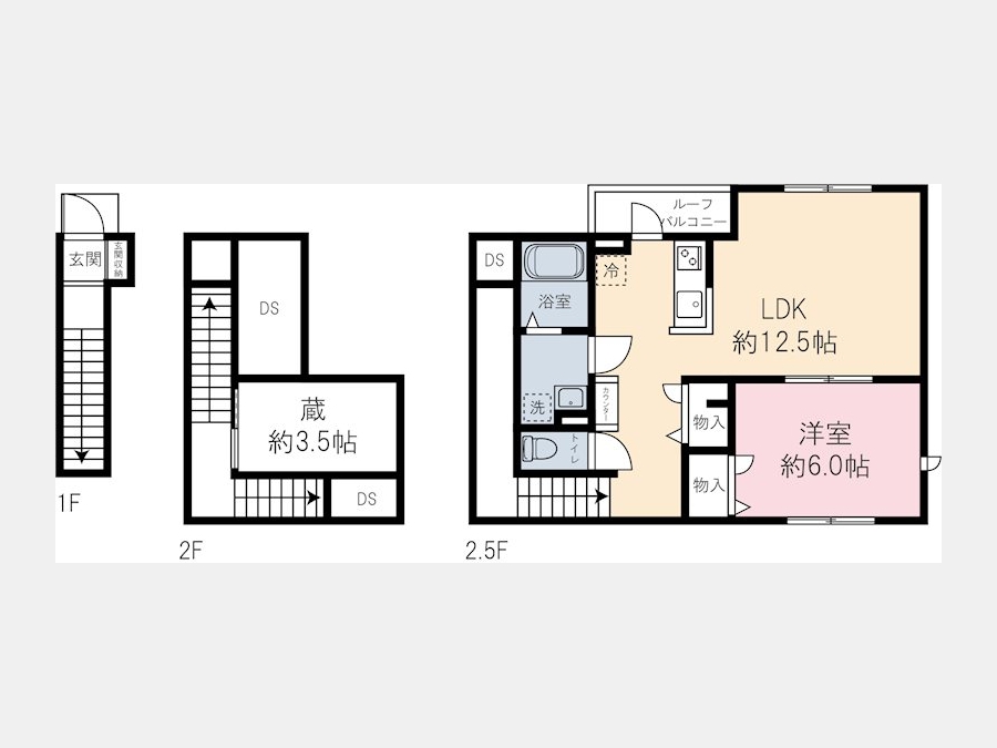 LDK 12.5 畳 洋室 6 畳 その他 3.5 畳 |