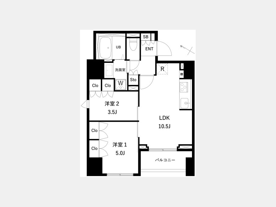洋室 5 畳 1 室 洋室 3.5 畳 1 室 LDK 10.5 畳 1 室 |