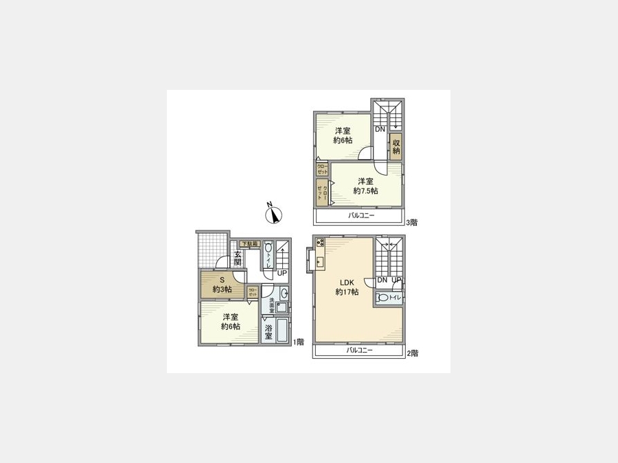 LDK 17 畳 洋室 6 畳 洋室 6 畳 洋室 7.5 畳 S 3 畳 |