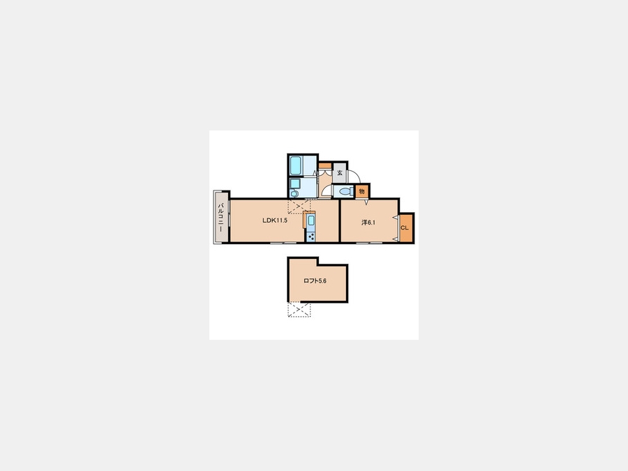 LDK 11.5 畳 1 室 洋室 6.1 畳 1 室 ロフト5.6帖 |