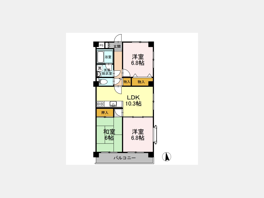 LDK 10.3 畳 和室 6 畳 洋室 6.8 畳 洋室 6.8 畳 |