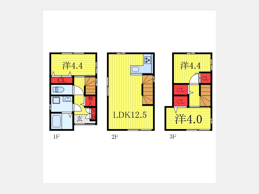 LDK 12.5 畳 洋室 4.3 畳 洋室 4.4 畳 洋室 4 畳 |