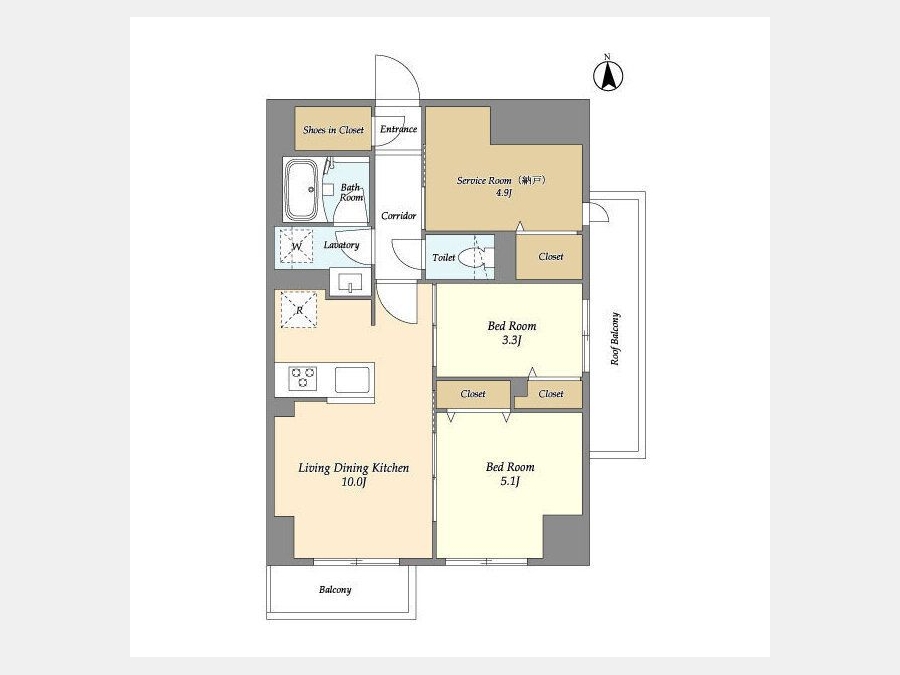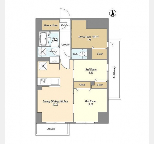 LDK 10 畳 1 室 洋室 5.1 畳 1 室 洋室 3.3 畳 1 室 S 4.9 畳 1 室 |