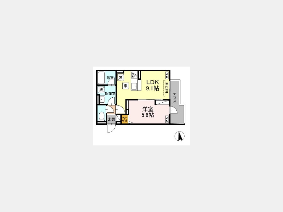 LDK 9.1 畳 1 室 洋室 5.6 畳 1 室 |