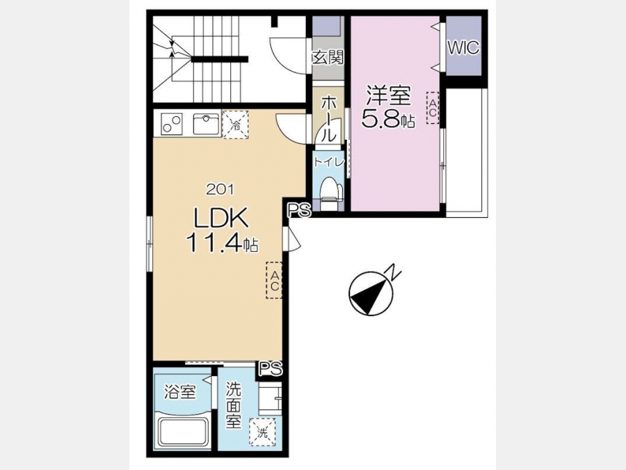 LDK 11.4 畳 1 室 洋室 5.8 畳 1 室 |