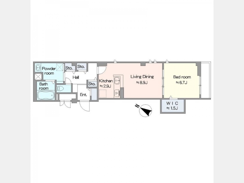 | 敷金/礼金 | 1ヶ月 / 1ヶ月 | 専有面積 | 51.43m² |