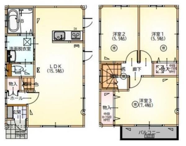 LDK 15.5 畳 洋室 7.4 畳 洋室 5.5 畳 洋室 5.5 畳 |