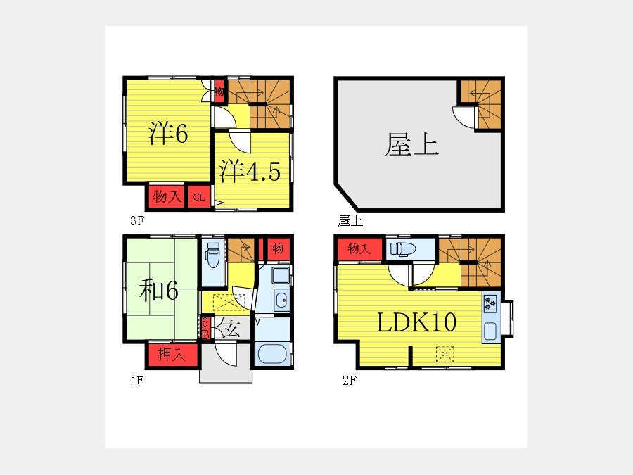 洋室 6 畳 洋室 4.5 畳 和室 6 畳 LDK 10 畳 |