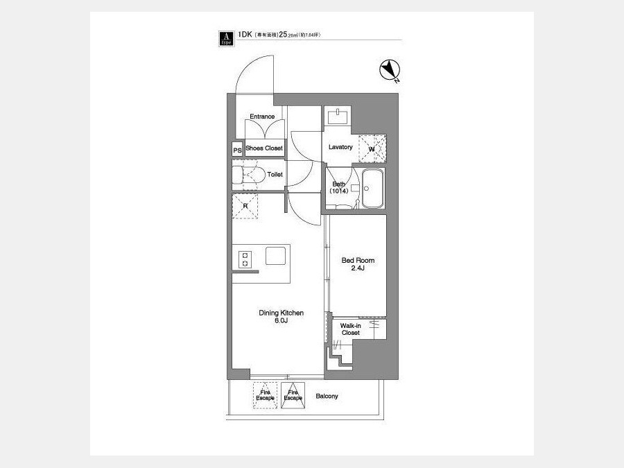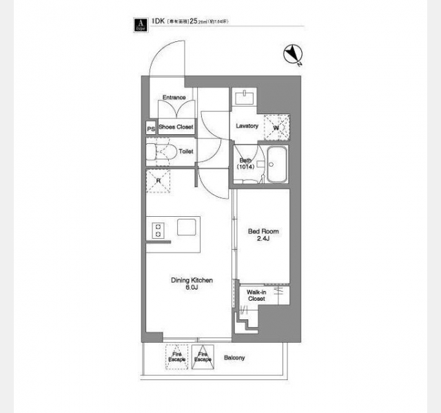| 敷金/礼金 | 1ヶ月 / なし | 専有面積 | 25.26m² |