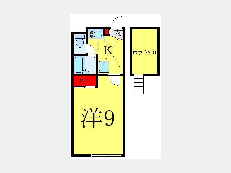 洋室 9 畳 ロフト2.6帖 |