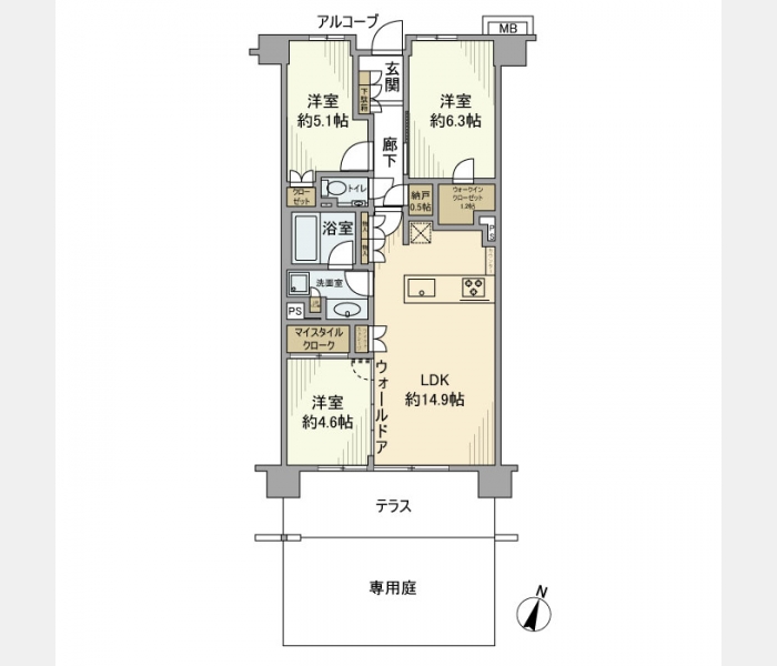 LDK 14.9 畳 洋室 4.6 畳 洋室 5.1 畳 洋室 6.3 畳 |