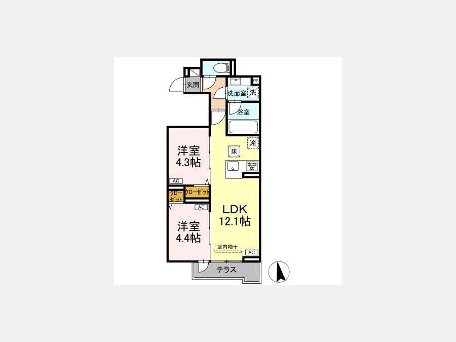 LDK 12.1 畳 洋室 4.4 畳 洋室 4.3 畳 |