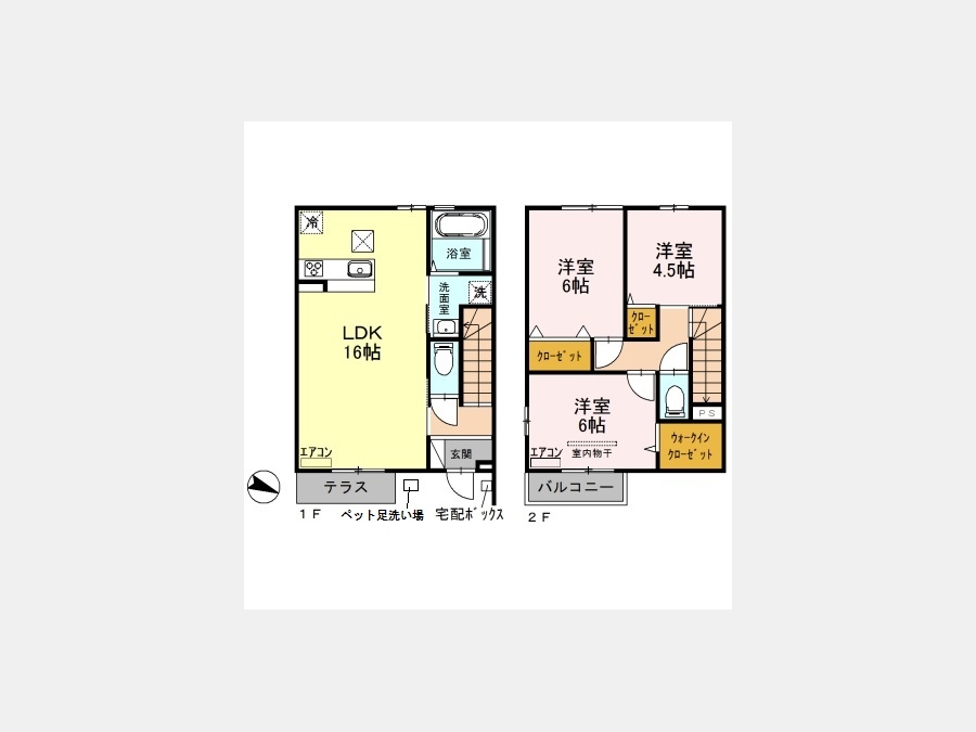 洋室 6 畳 洋室 6 畳 洋室 4.5 畳 LDK 16 畳 |