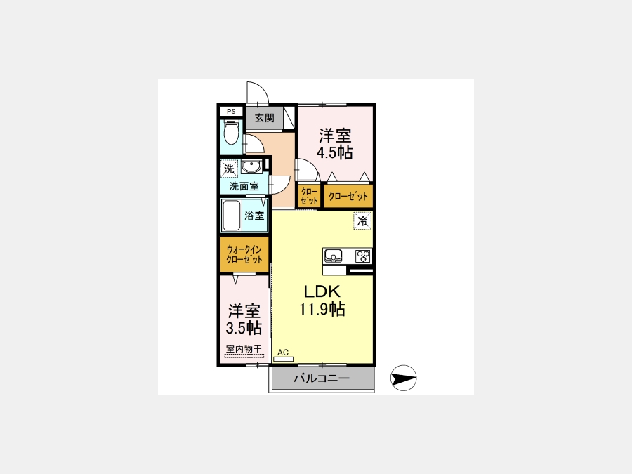 LDK 11.9 畳 洋室 3.5 畳 洋室 4.5 畳 |