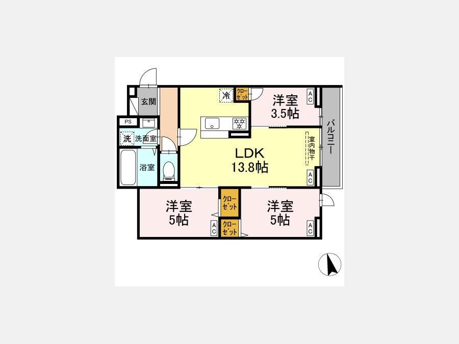 LDK 13.8 畳 洋室 5 畳 洋室 5 畳 洋室 3.5 畳 |