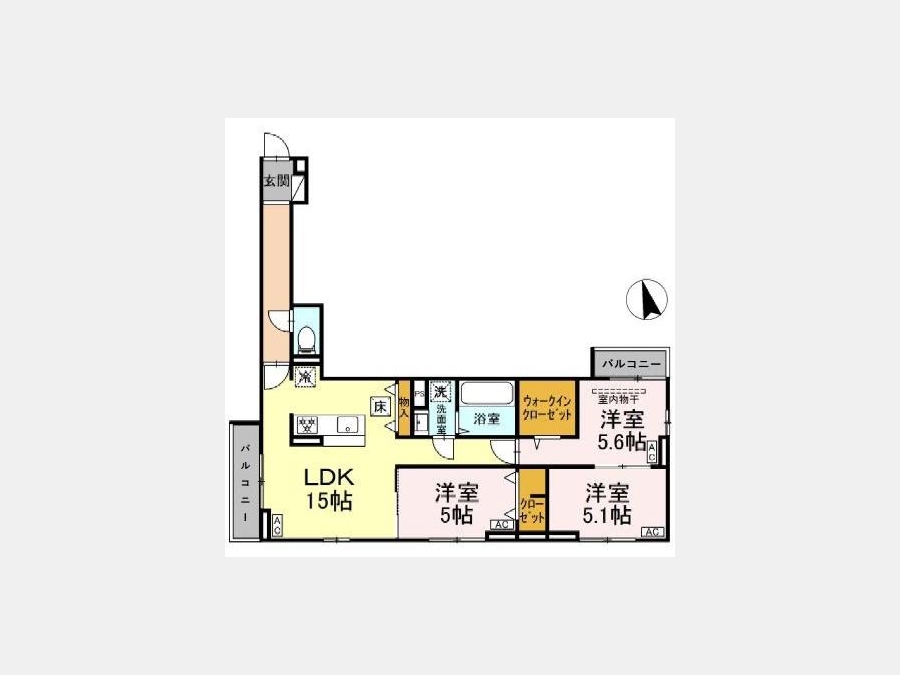 LDK 15 畳 洋室 5.6 畳 洋室 5.1 畳 洋室 5 畳 |