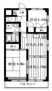 洋室 4.6 畳 和室 6 畳 洋室 4.9 畳 DK 6.1 畳 |