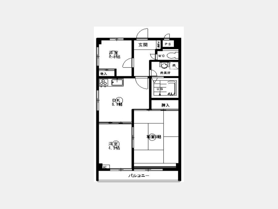 DK 6.1 畳 洋室 4.9 畳 洋室 4.6 畳 和室 6 畳 |