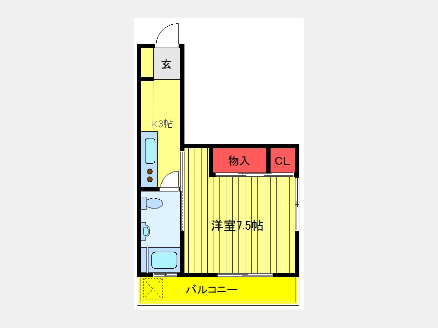 洋室 7.5 畳 1 室 K 3 畳 1 室 |