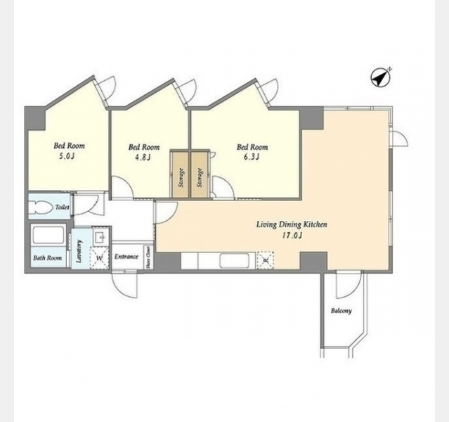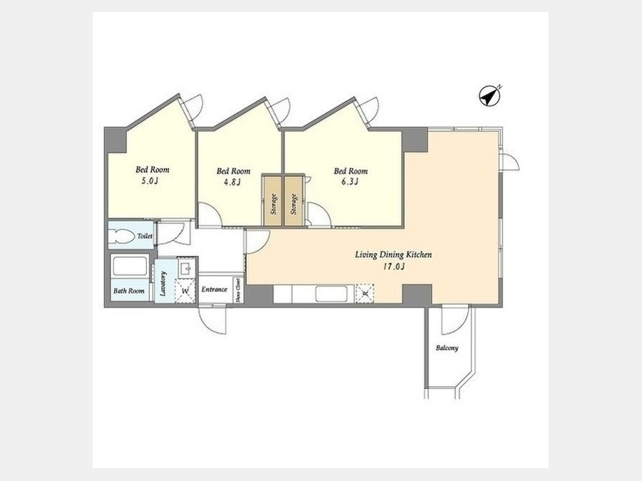 LDK 17 畳 洋室 6.3 畳 洋室 5 畳 洋室 4.8 畳 |