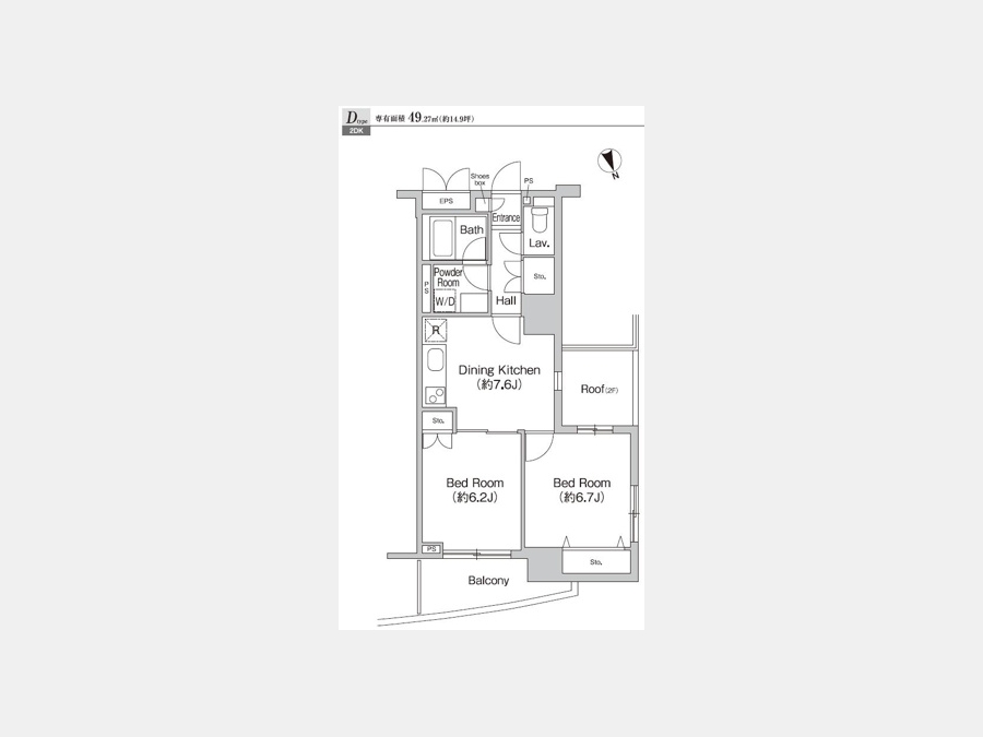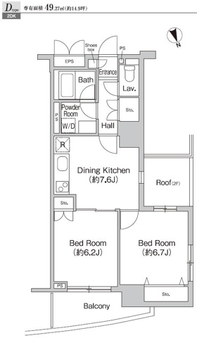 | 専有面積 | 49.27m² | バルコニー面積 | |