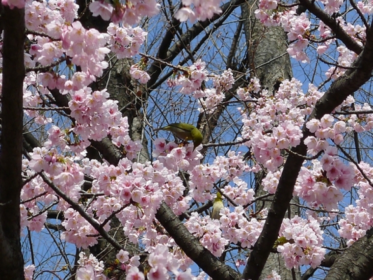 集まっているのは人だけかと思いきや、小鳥もたくさん集まって花見を楽しんでおりました。