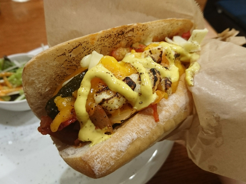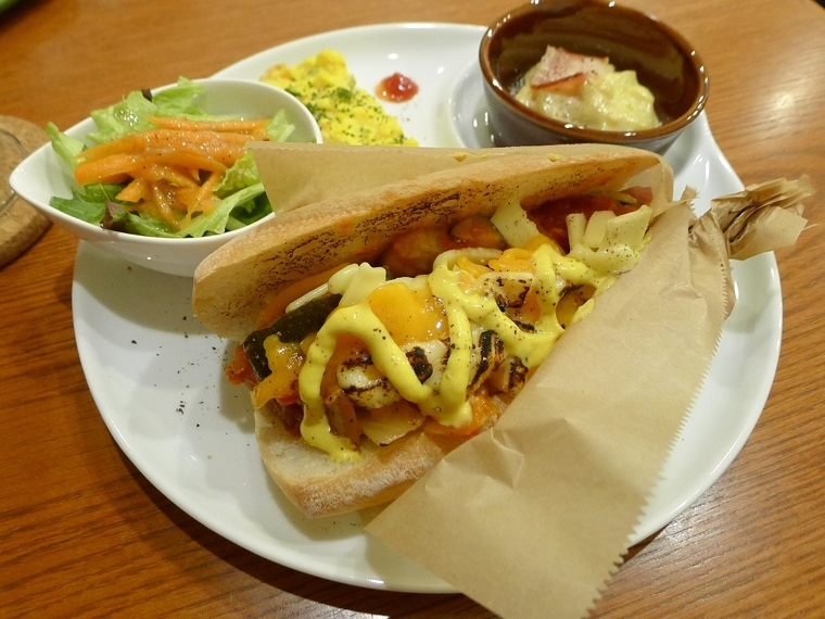 本日のサンドは「ラタトゥイユとソーセージの焼きチーズサンド」。